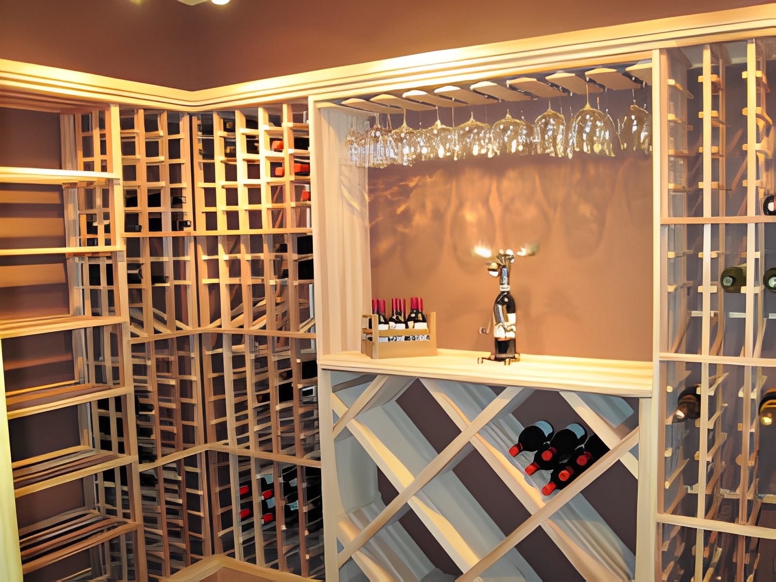 Custom built out of western red pine, this wine cellar can house 1,300 bottles of wine in a temperature controlled environment. The pleasant, decor multiple…